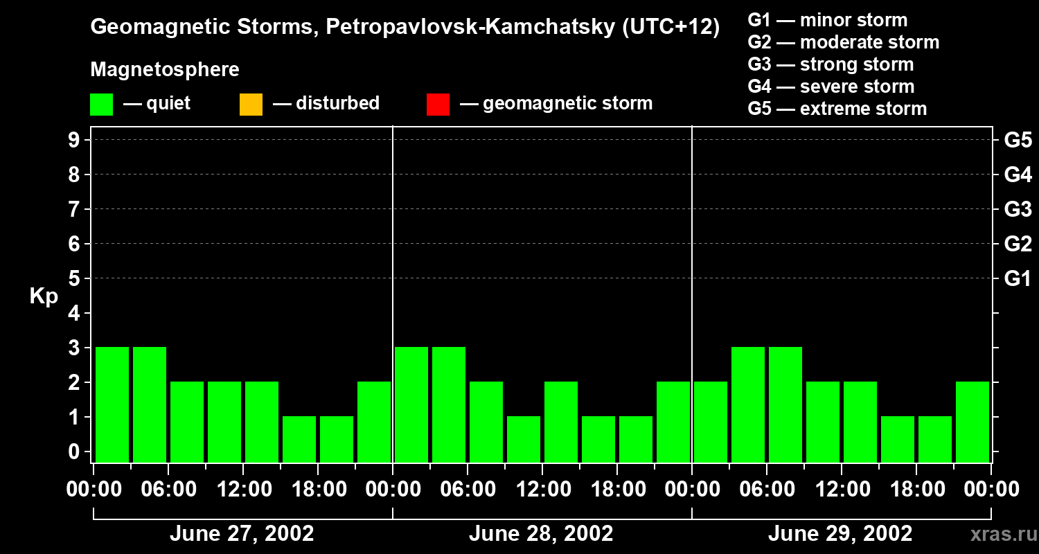 Geomagnetic storms in Petropavlovsk-Kamchatsky — Jun 29, 2002