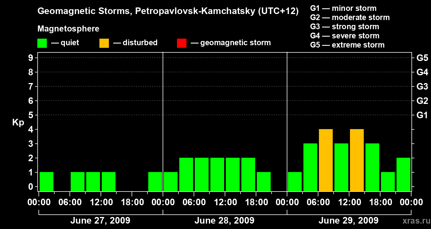 Geomagnetic storms in Petropavlovsk-Kamchatsky — Jun 29, 2009