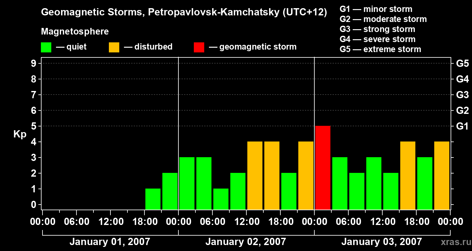 Geomagnetic storms in Petropavlovsk-Kamchatsky — Jan 03, 2007