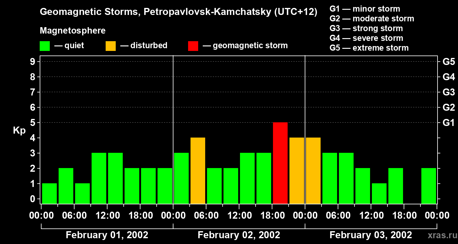Geomagnetic storms in Petropavlovsk-Kamchatsky — Feb 03, 2002