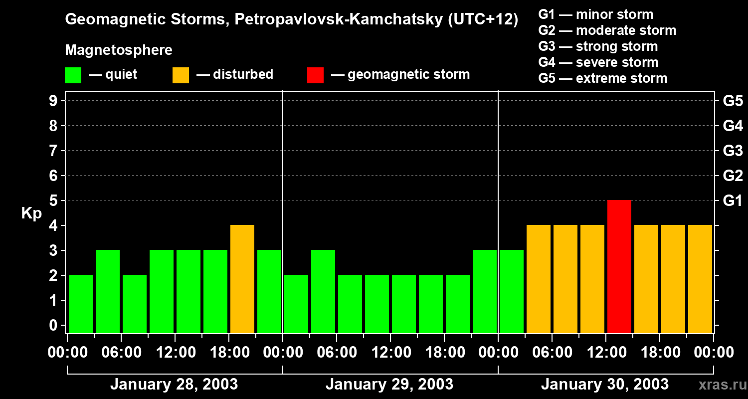 Geomagnetic storms in Petropavlovsk-Kamchatsky — Jan 30, 2003