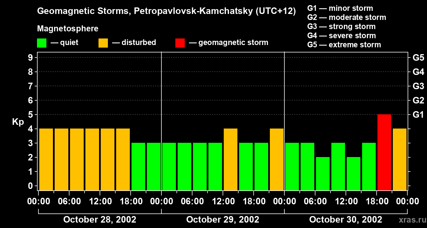 Geomagnetic storms in Petropavlovsk-Kamchatsky — Oct 30, 2002