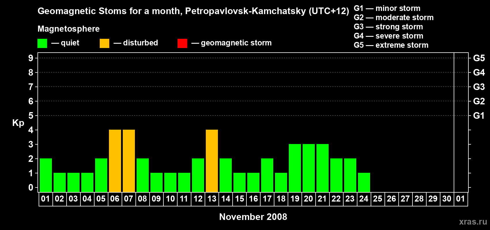 Geomagnetic storms in Petropavlovsk-Kamchatsky — Nov 30, 2008