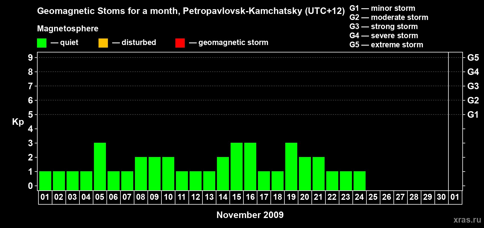 Geomagnetic storms in Petropavlovsk-Kamchatsky — Nov 30, 2009