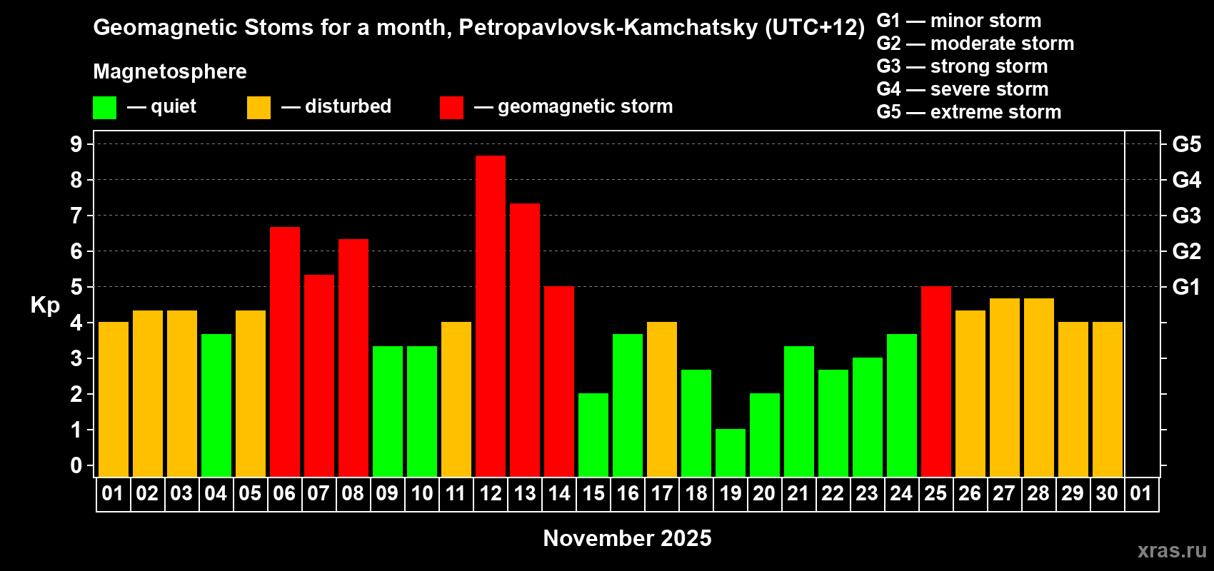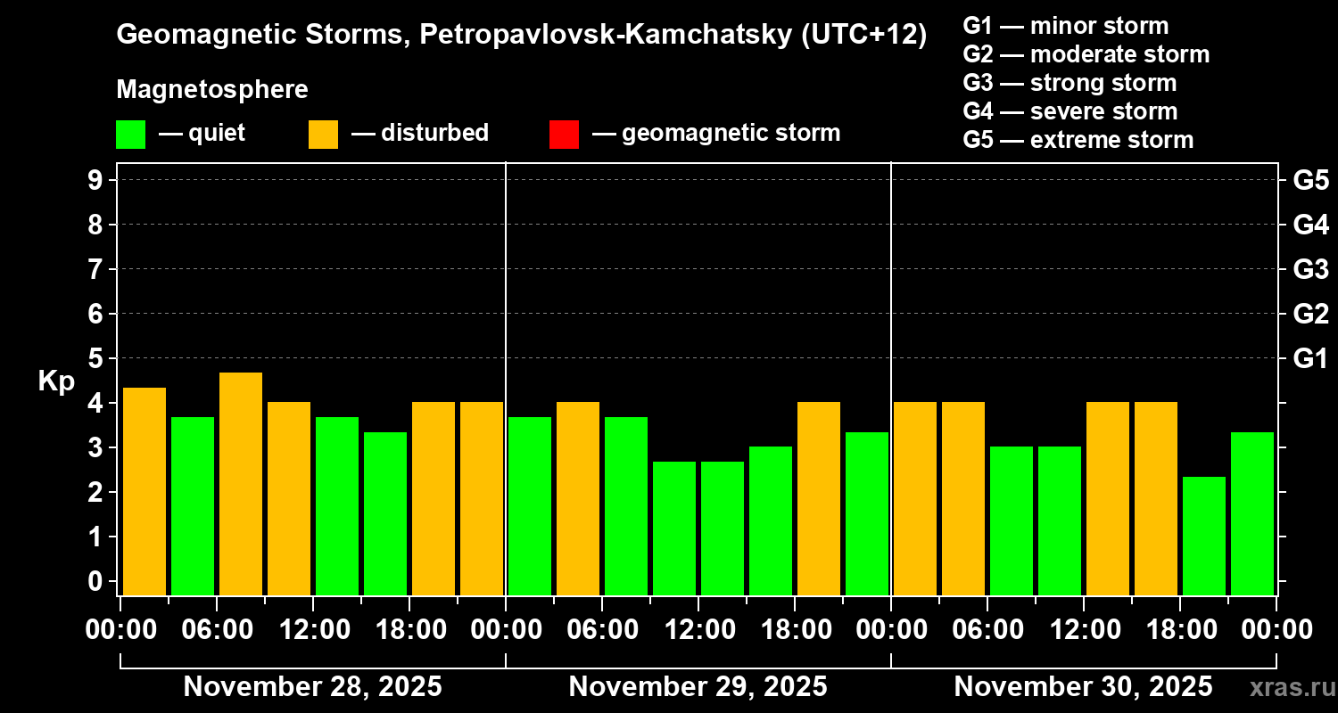Geomagnetic storms in Petropavlovsk-Kamchatsky on Nov 30, 2025