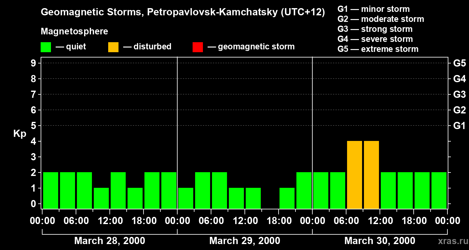 Geomagnetic storms in Petropavlovsk-Kamchatsky — Mar 30, 2000