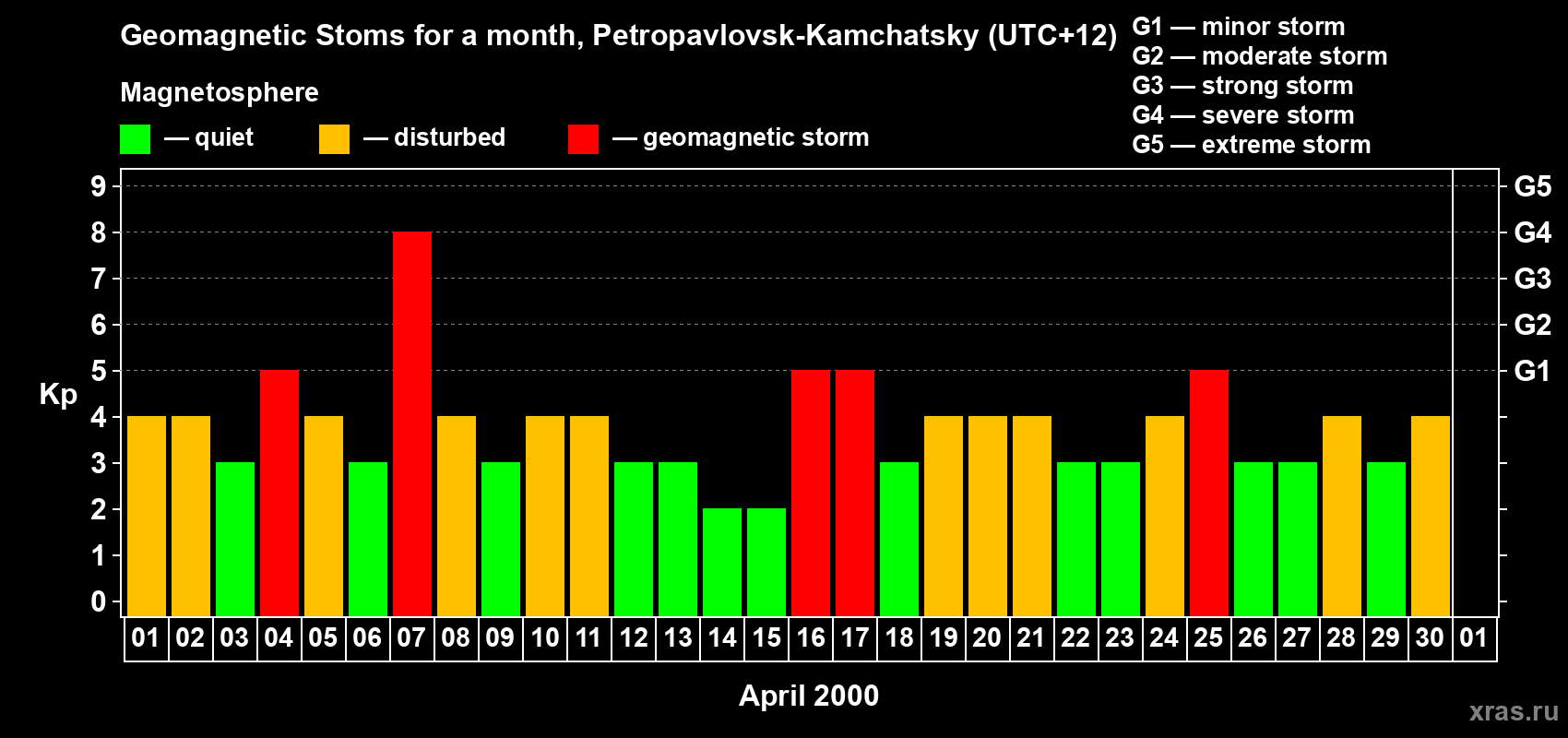 Geomagnetic storms in Petropavlovsk-Kamchatsky — Apr 30, 2000