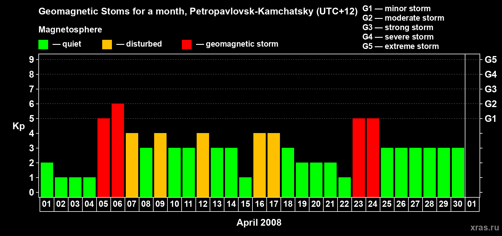 Geomagnetic storms in Petropavlovsk-Kamchatsky — Apr 30, 2008