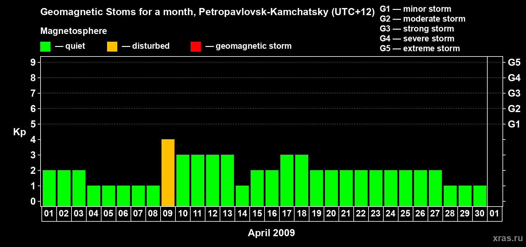 Geomagnetic storms in Petropavlovsk-Kamchatsky — Apr 30, 2009
