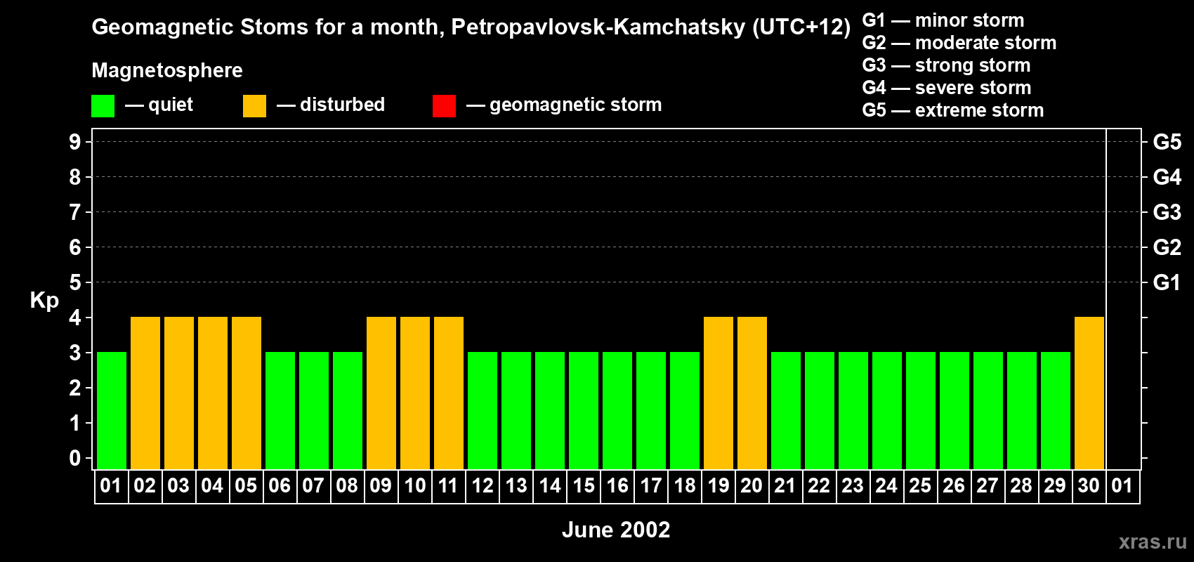 Geomagnetic storms in Petropavlovsk-Kamchatsky — Jun 30, 2002