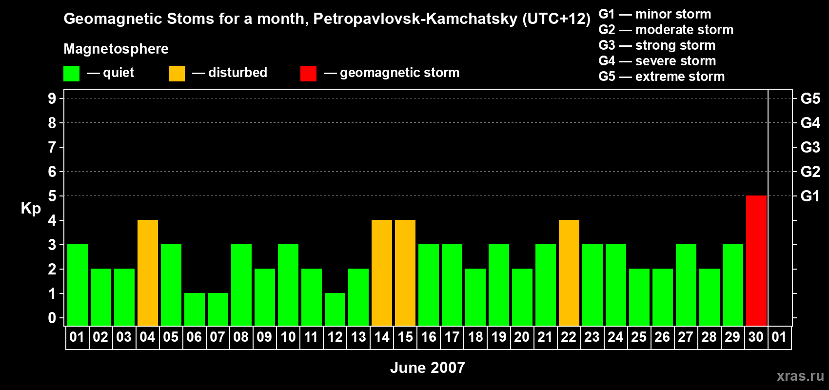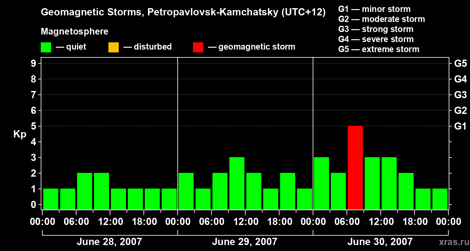 Geomagnetic storms in Petropavlovsk-Kamchatsky — Jun 30, 2007