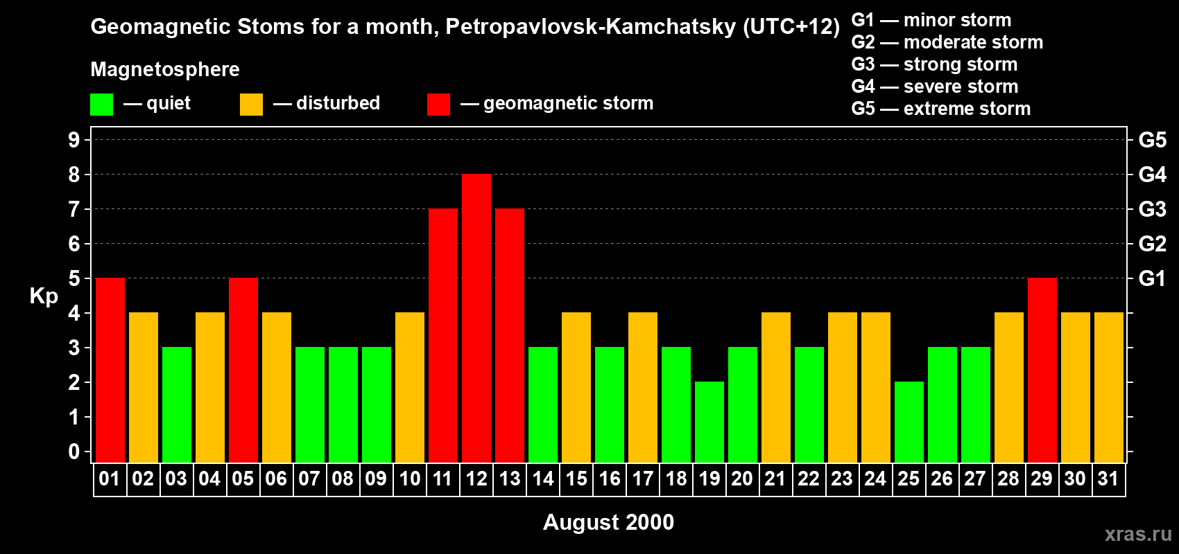 Geomagnetic storms in Petropavlovsk-Kamchatsky in August 2000