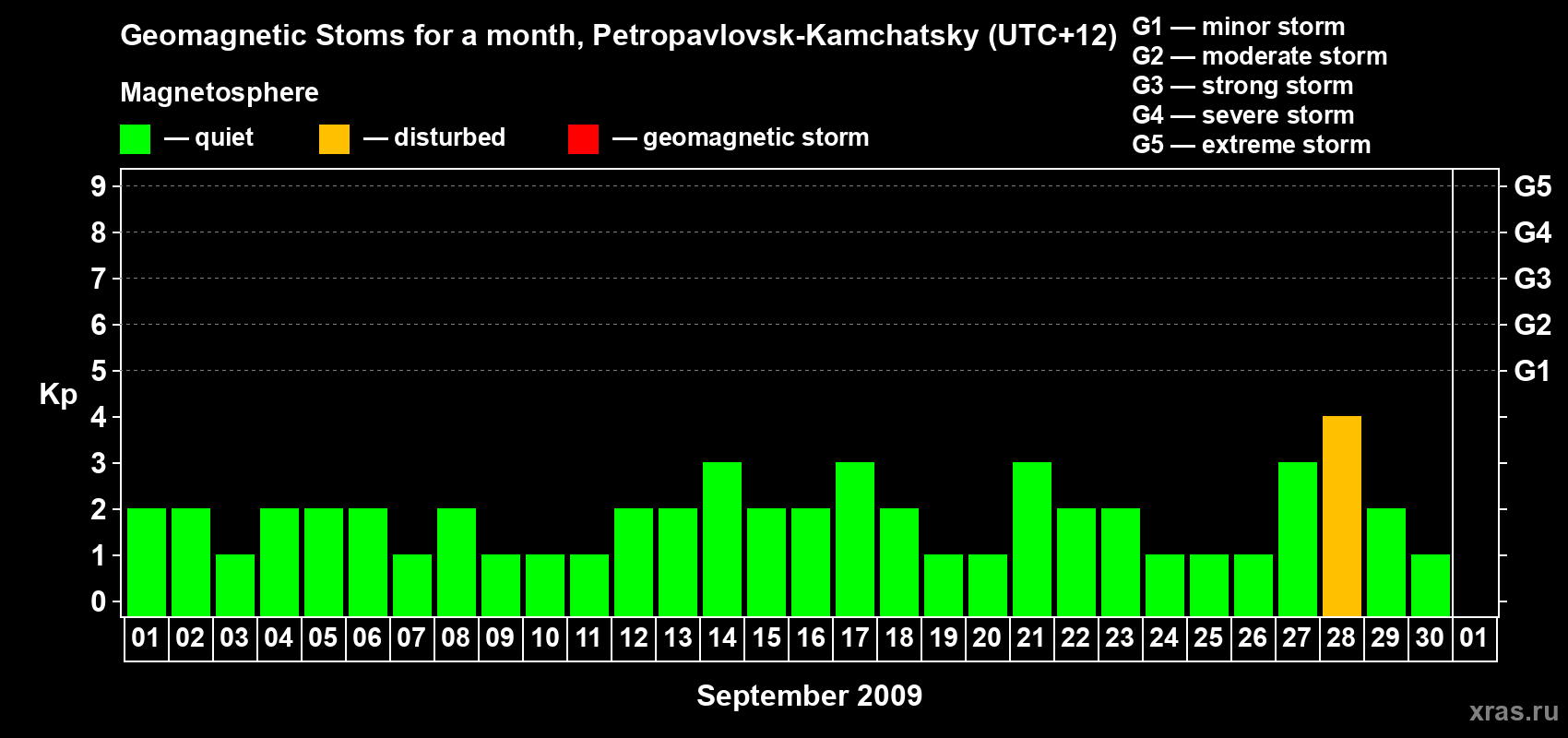 Geomagnetic storms in Petropavlovsk-Kamchatsky — Sep 30, 2009