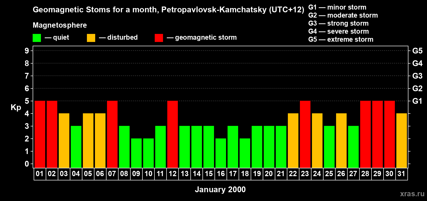 Geomagnetic storms in Petropavlovsk-Kamchatsky in January 2000