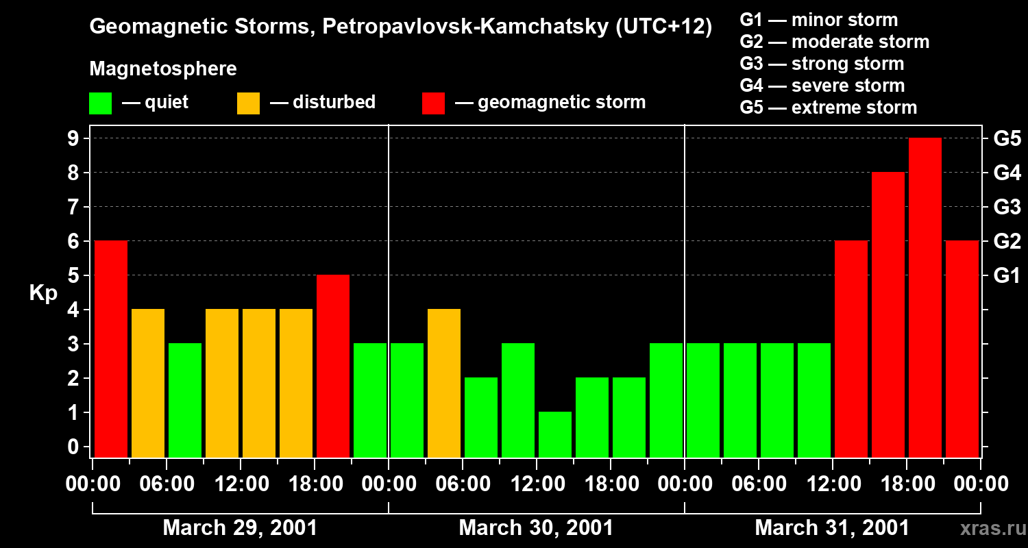 Geomagnetic storms in Petropavlovsk-Kamchatsky — Mar 31, 2001