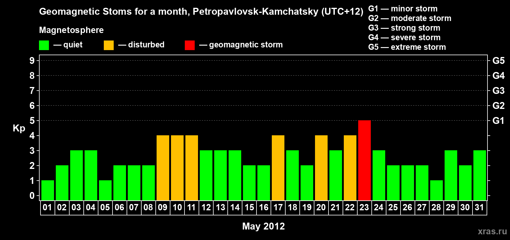 Geomagnetic storms in Petropavlovsk-Kamchatsky — May 31, 2012