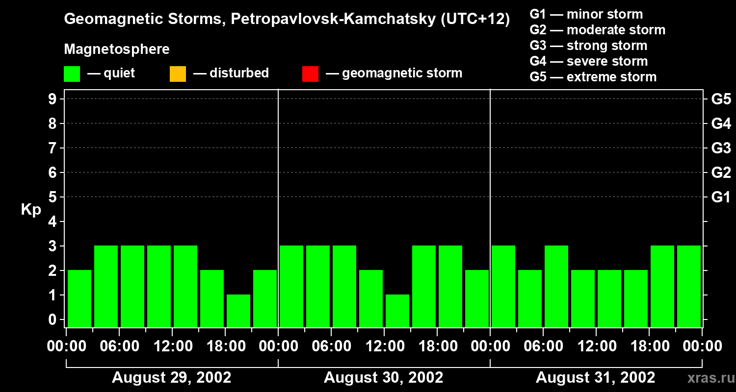 Geomagnetic storms in Petropavlovsk-Kamchatsky — Aug 31, 2002