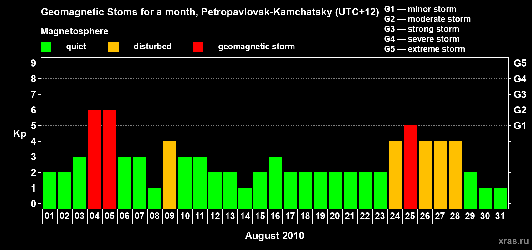 Geomagnetic storms in Petropavlovsk-Kamchatsky in August 2010