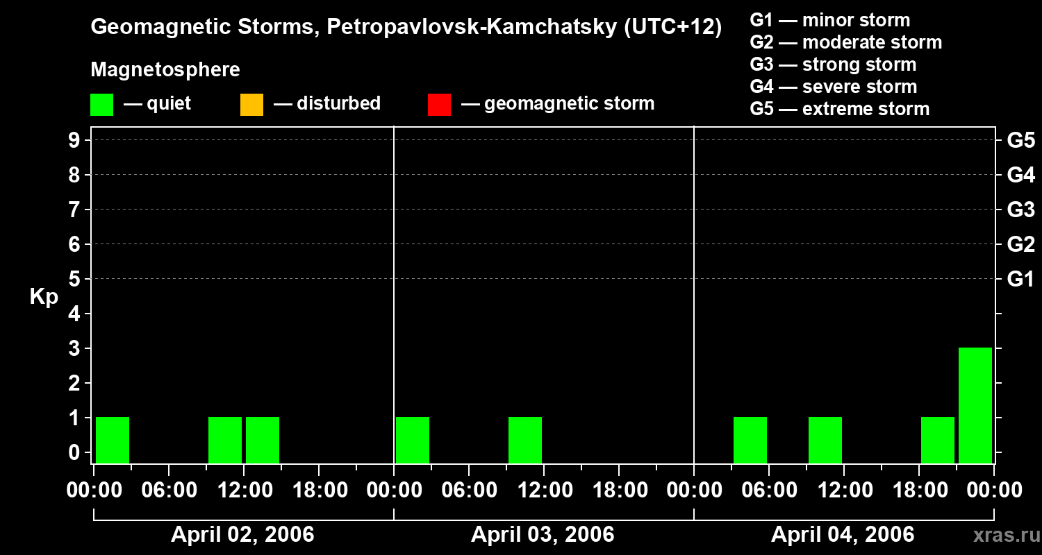 Geomagnetic storms in Petropavlovsk-Kamchatsky on Apr 04, 2006