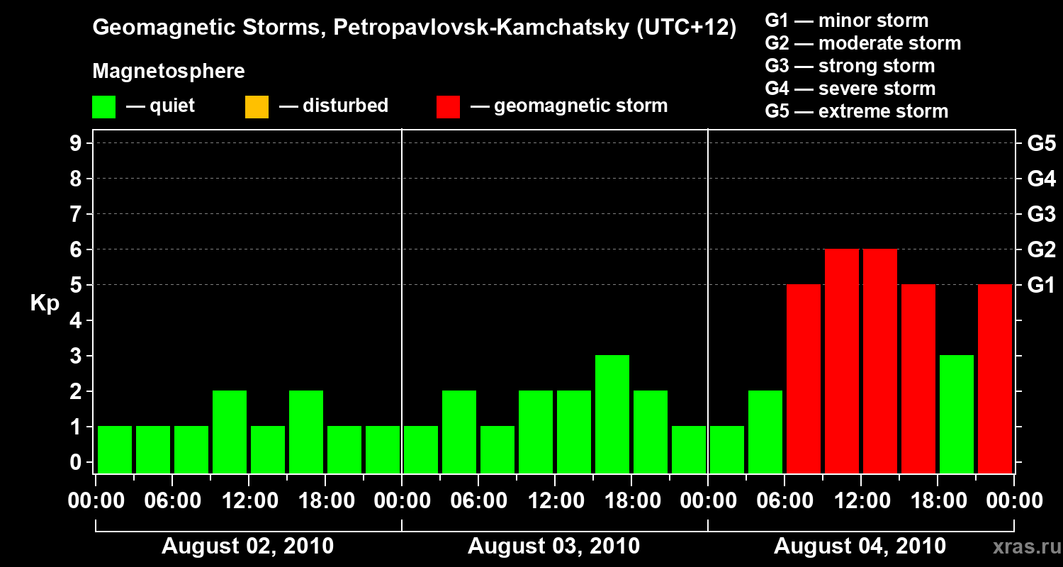 Geomagnetic storms in Petropavlovsk-Kamchatsky — Aug 04, 2010