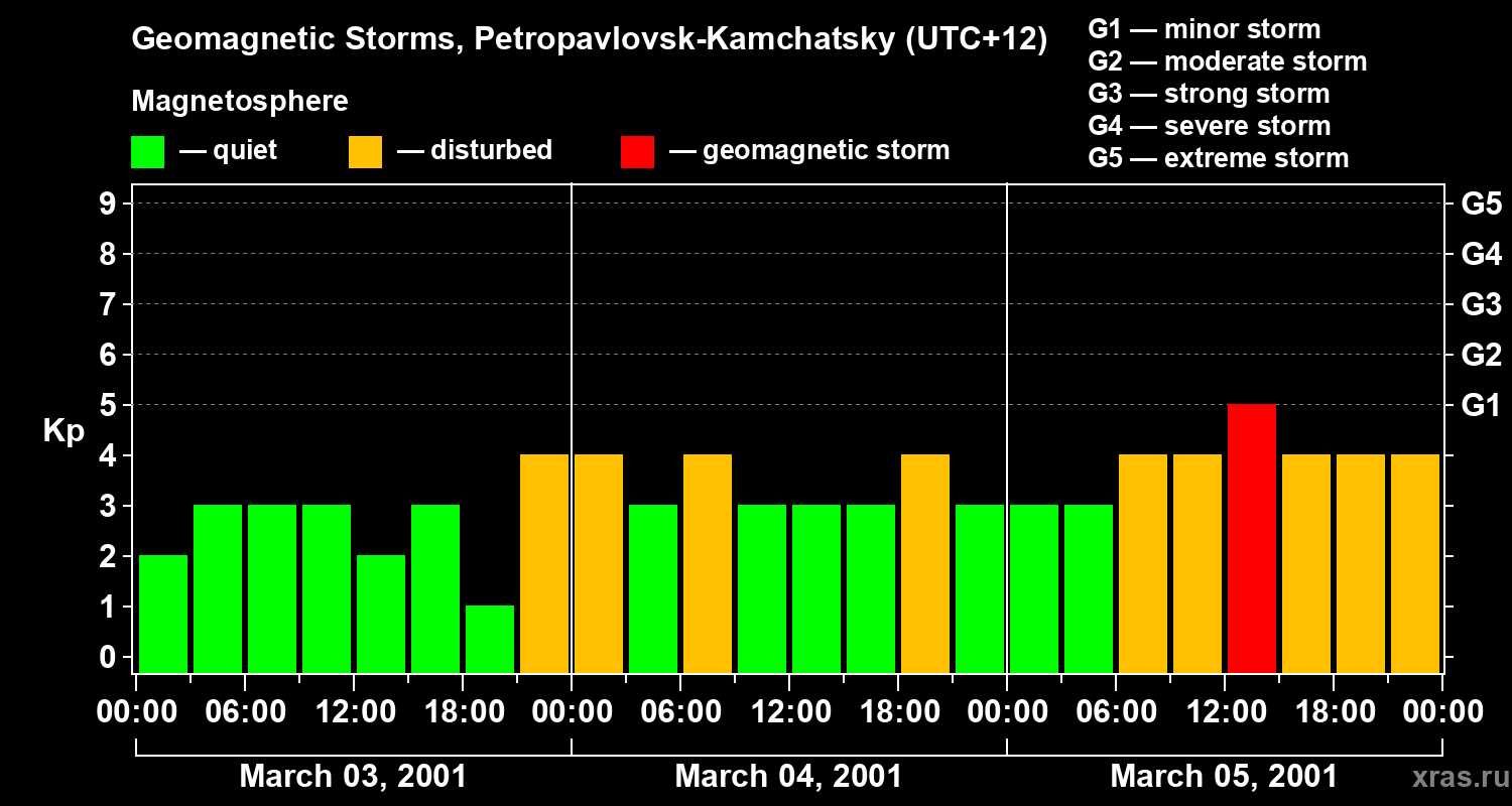 Geomagnetic storms in Petropavlovsk-Kamchatsky — Mar 05, 2001