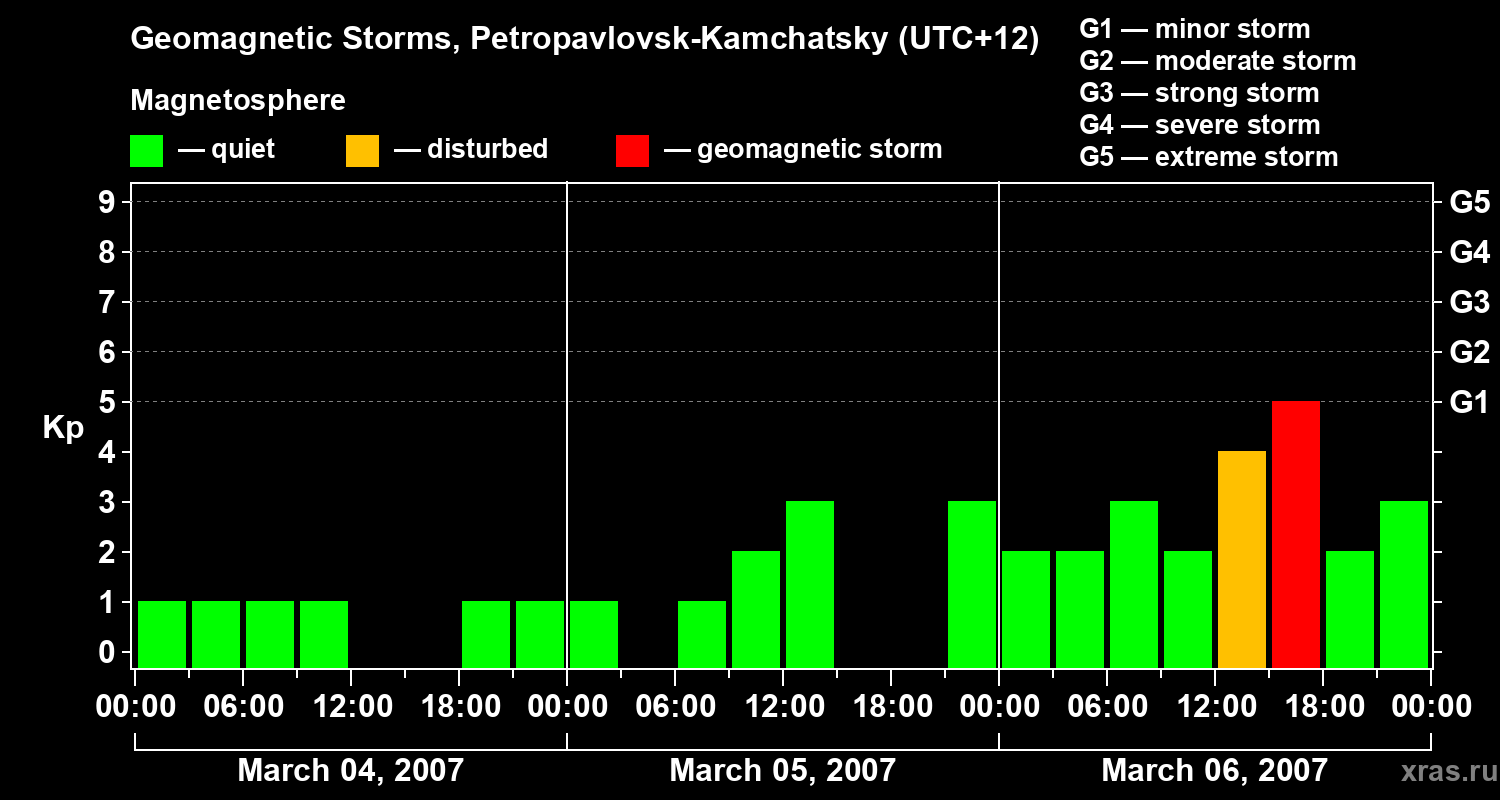 Geomagnetic storms in Petropavlovsk-Kamchatsky — Mar 06, 2007