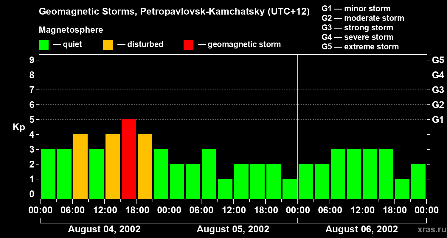 Geomagnetic storms in Petropavlovsk-Kamchatsky — Aug 06, 2002