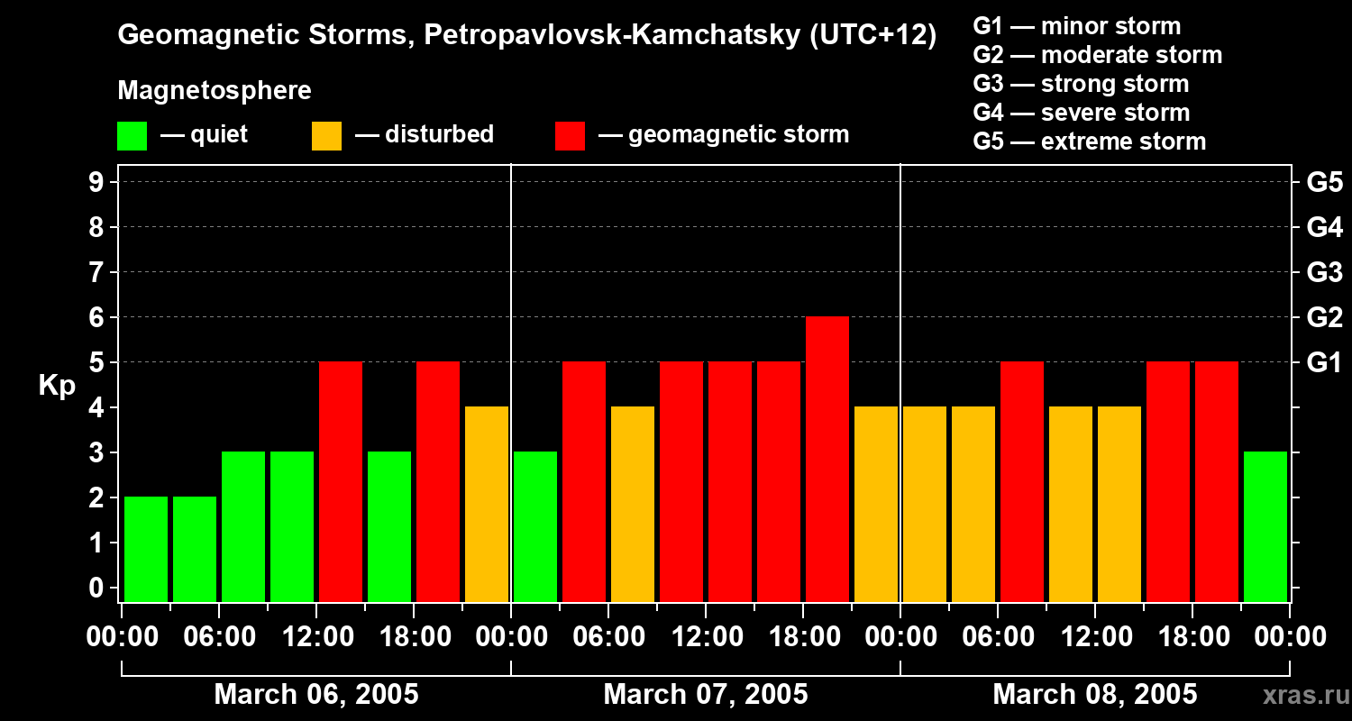 Geomagnetic storms in Petropavlovsk-Kamchatsky — Mar 08, 2005