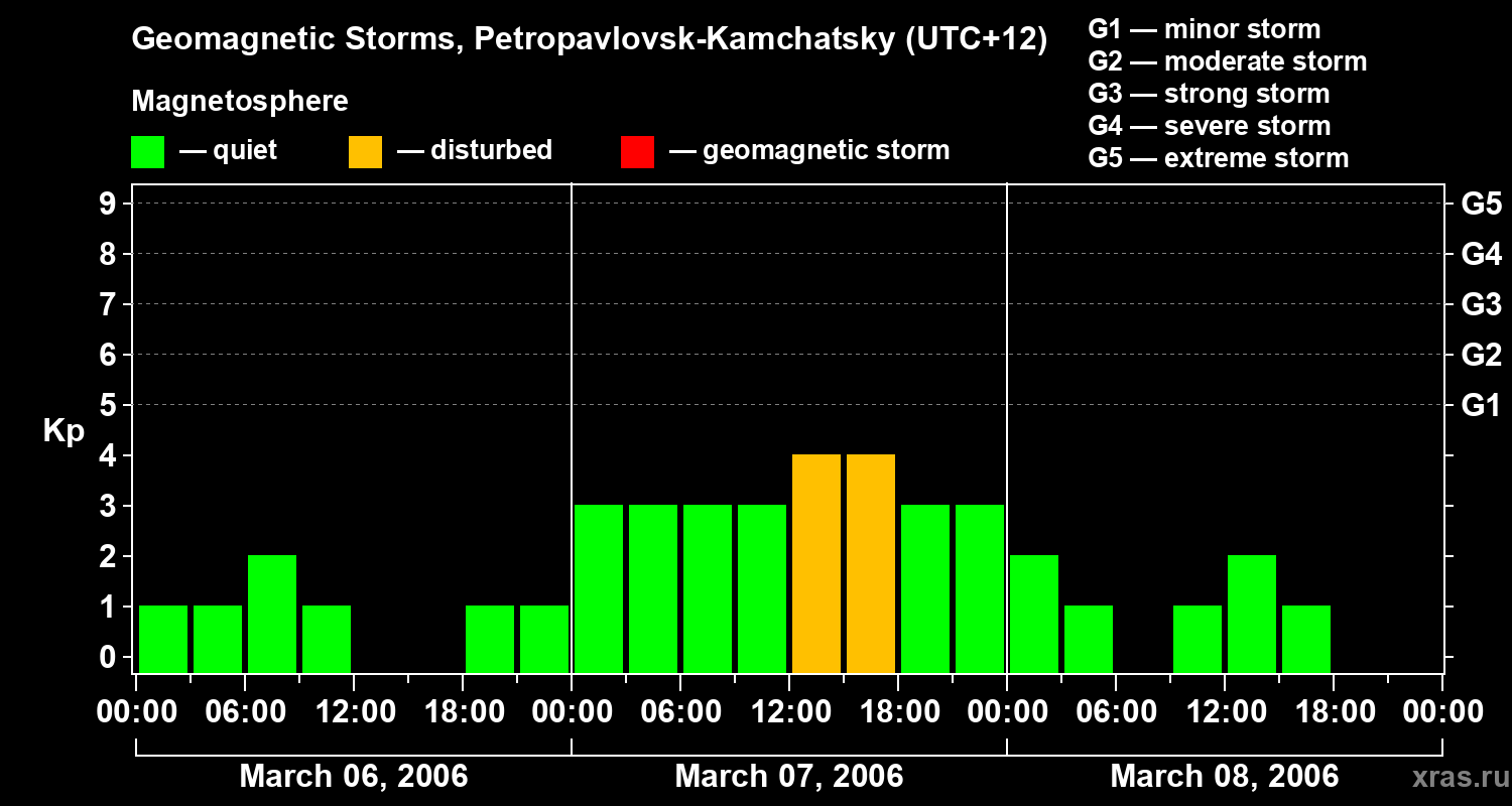 Geomagnetic storms in Petropavlovsk-Kamchatsky on Mar 08, 2006