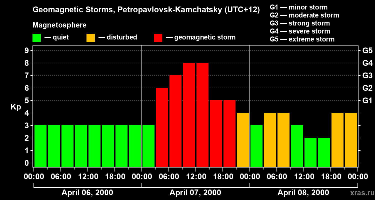Geomagnetic storms in Petropavlovsk-Kamchatsky — Apr 08, 2000
