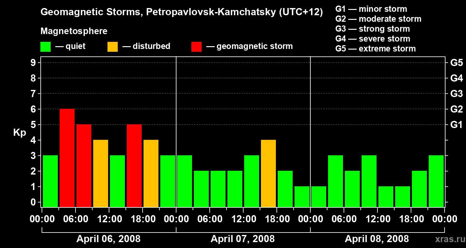 Geomagnetic storms in Petropavlovsk-Kamchatsky on Apr 08, 2008