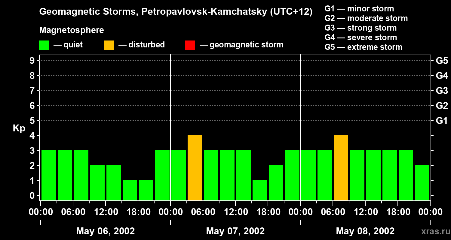 Geomagnetic storms in Petropavlovsk-Kamchatsky on May 08, 2002