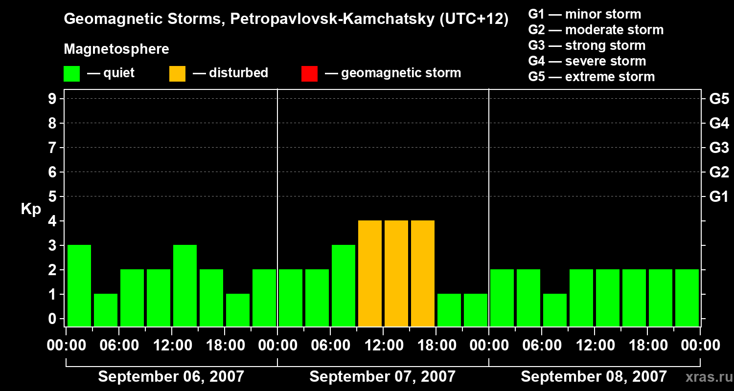Geomagnetic storms in Petropavlovsk-Kamchatsky on Sep 08, 2007