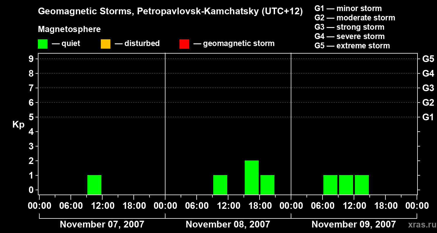 Geomagnetic storms in Petropavlovsk-Kamchatsky on Nov 09, 2007