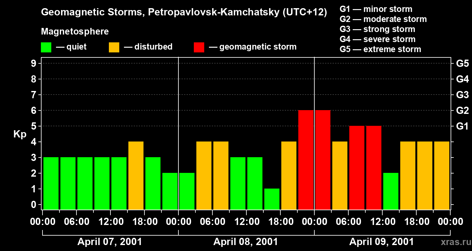 Geomagnetic storms in Petropavlovsk-Kamchatsky — Apr 09, 2001