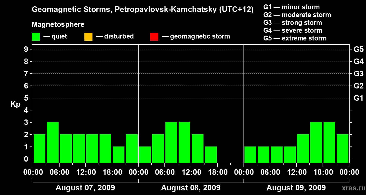 Geomagnetic storms in Petropavlovsk-Kamchatsky — Aug 09, 2009