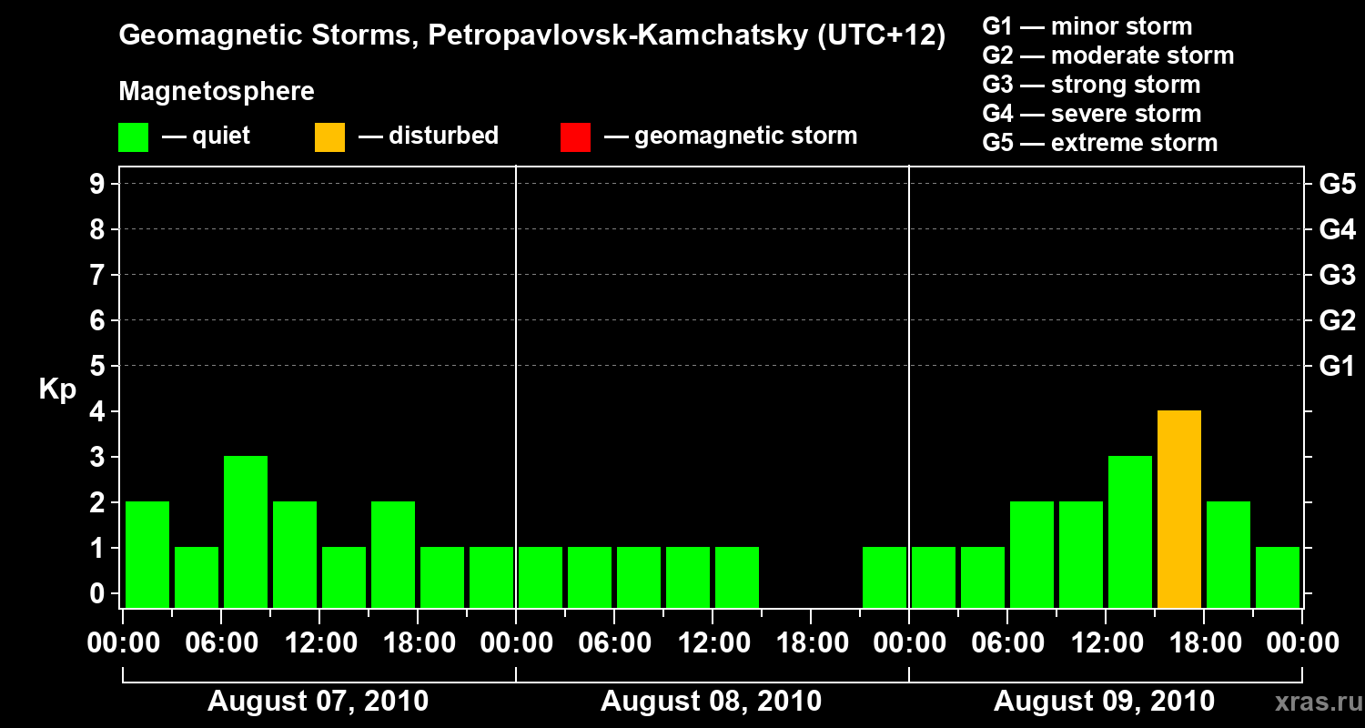 Geomagnetic storms in Petropavlovsk-Kamchatsky — Aug 09, 2010