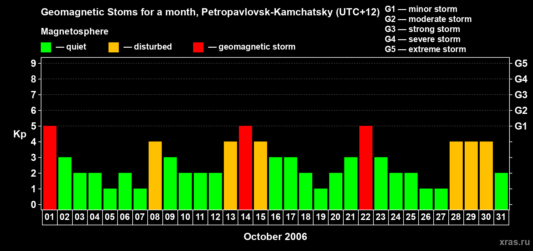 List of magnetic storms in October 2006