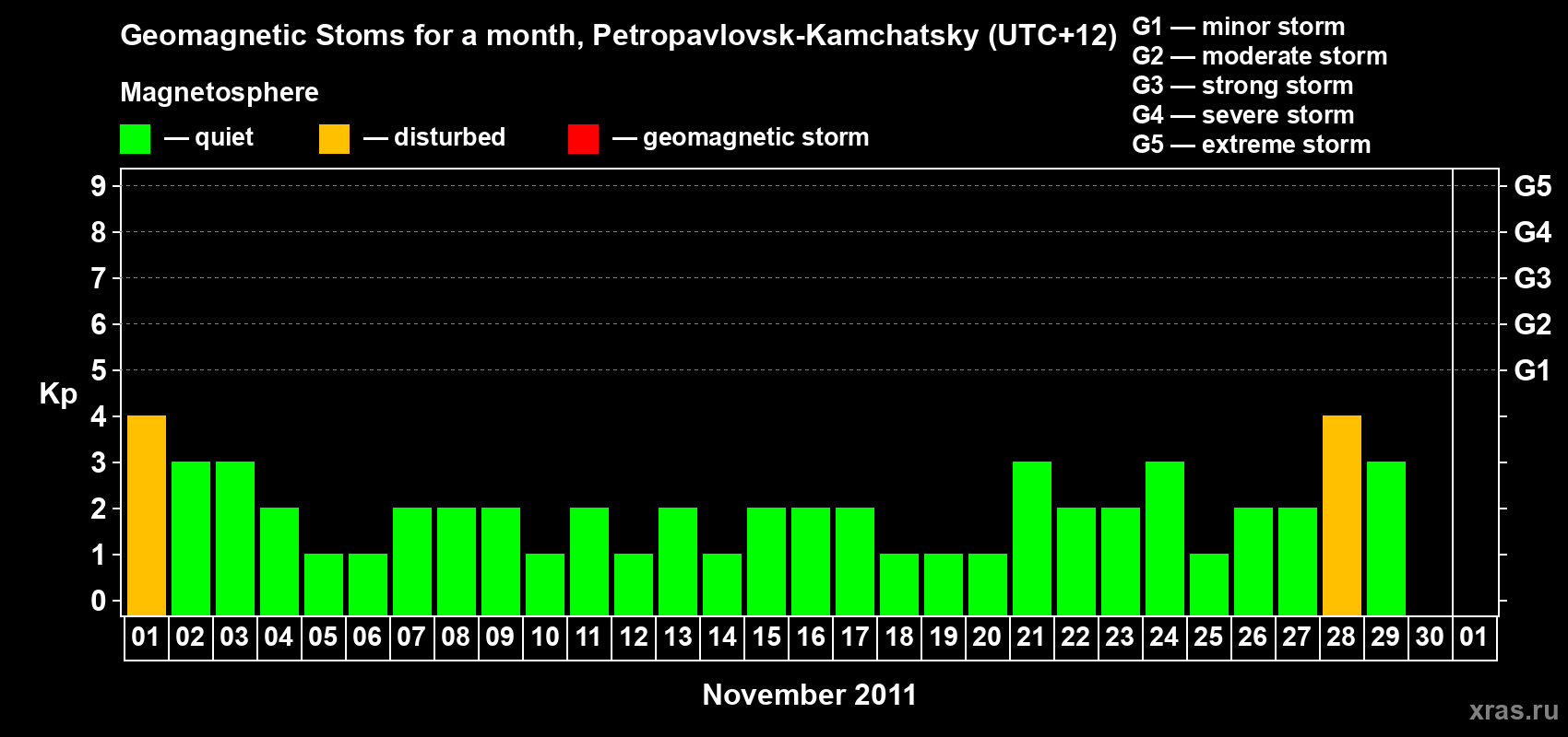 There were no days with an increased level of geomagnetic disturbance in November 2011