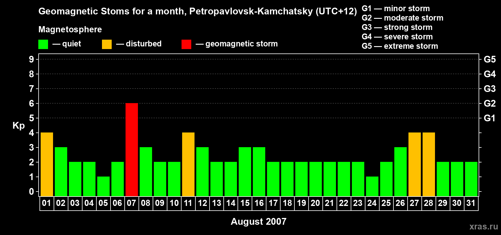 07 August 2007 — Magnetic storm of level G2