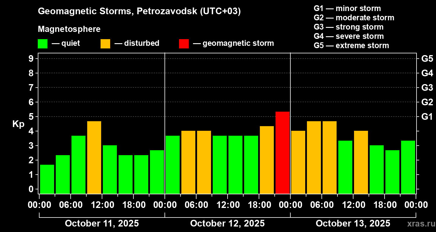 Geomagnetic storms in Petrozavodsk — Oct 13, 2025