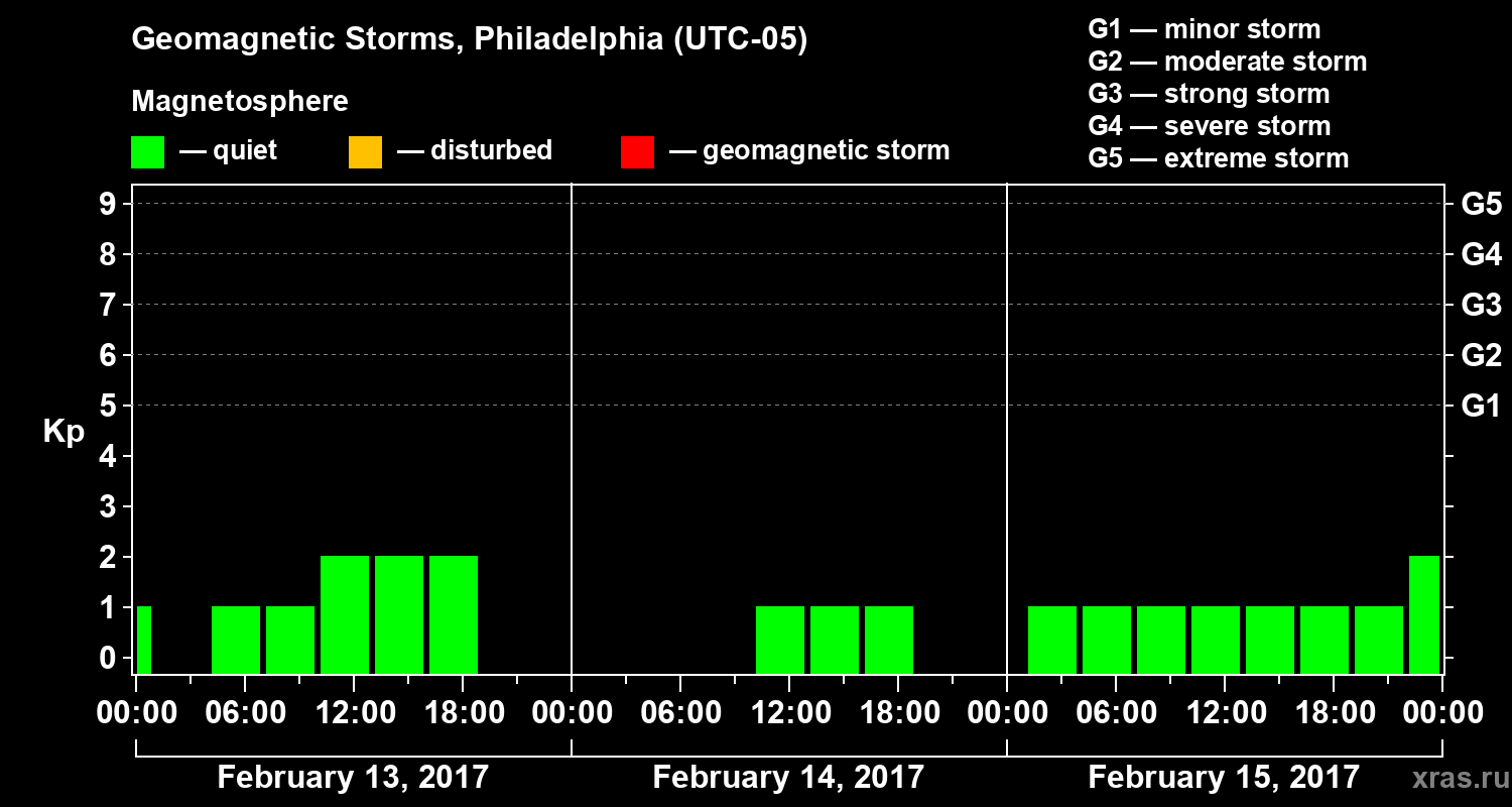 Geomagnetic storms in Philadelphia on Feb 15, 2017
