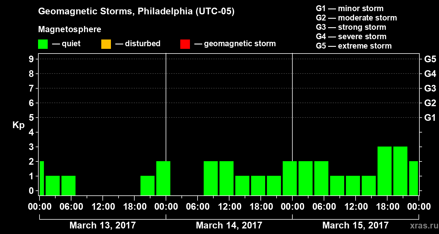 Geomagnetic storms in Philadelphia on Mar 15, 2017