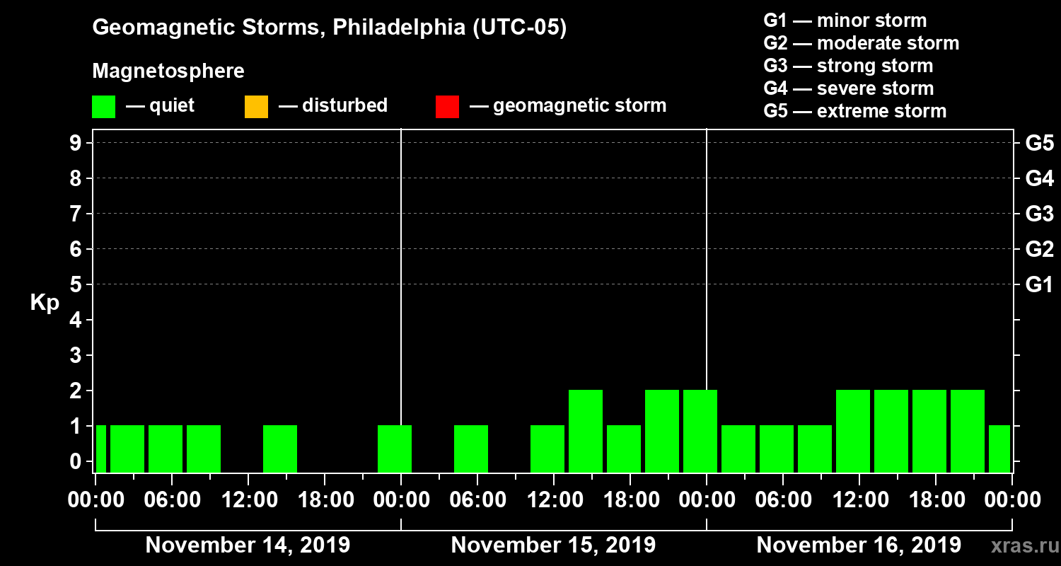 Geomagnetic storms in Philadelphia in November 2019
