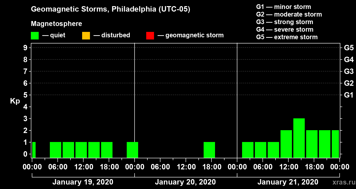 Geomagnetic storms in Philadelphia — Jan 21, 2020