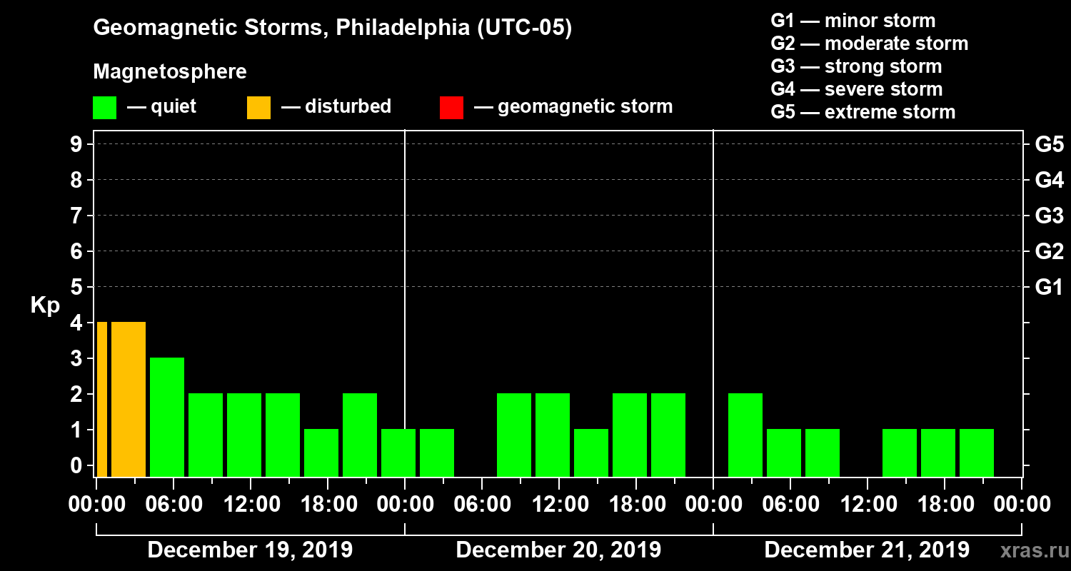 Geomagnetic storms in Philadelphia on Dec 21, 2019