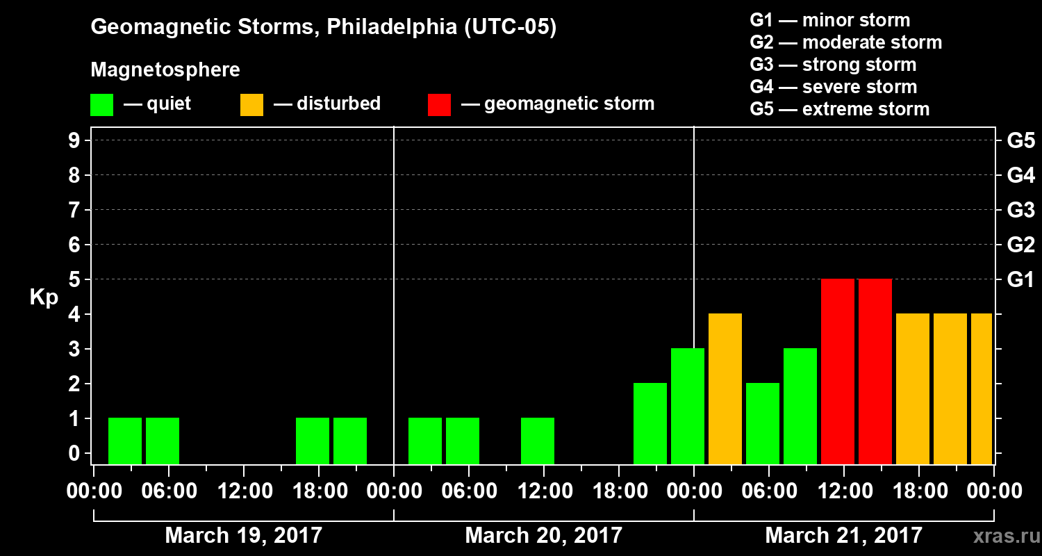 Geomagnetic storms in Philadelphia — Mar 21, 2017