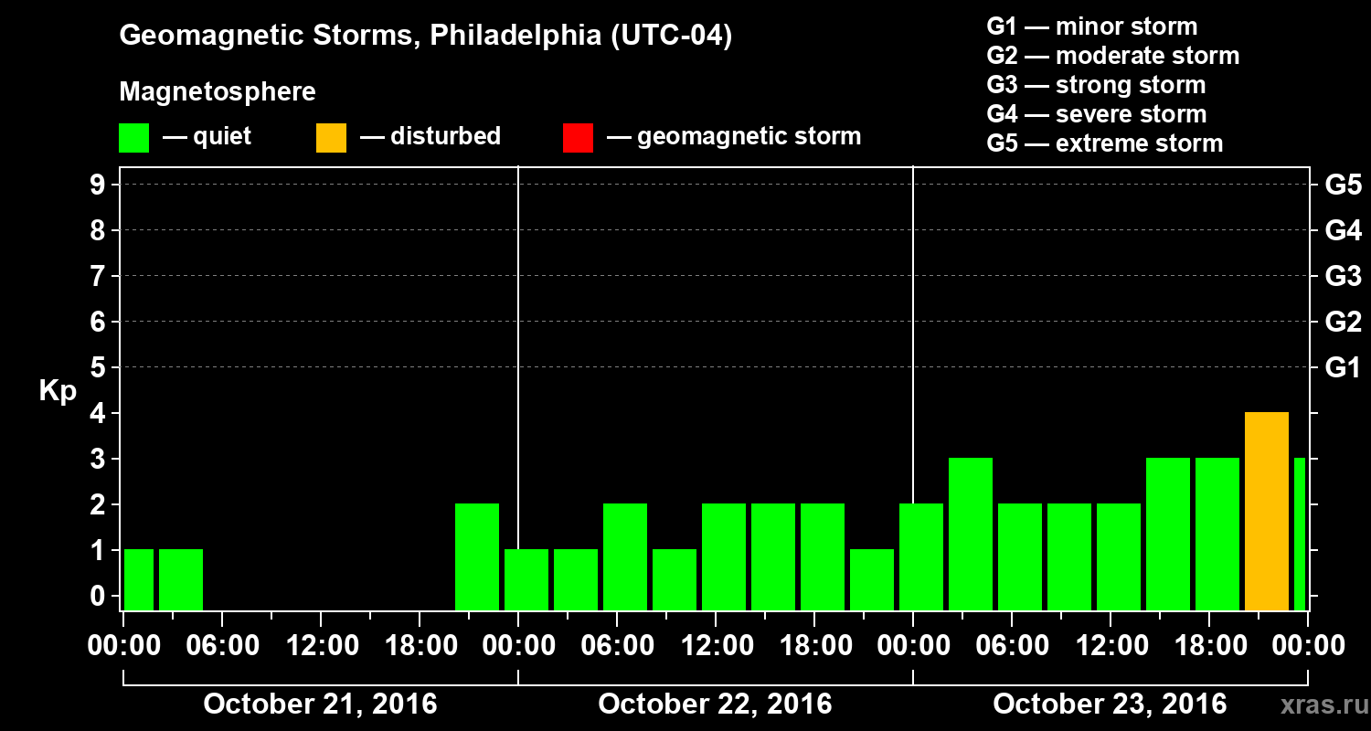 Geomagnetic storms in Philadelphia on Oct 23, 2016