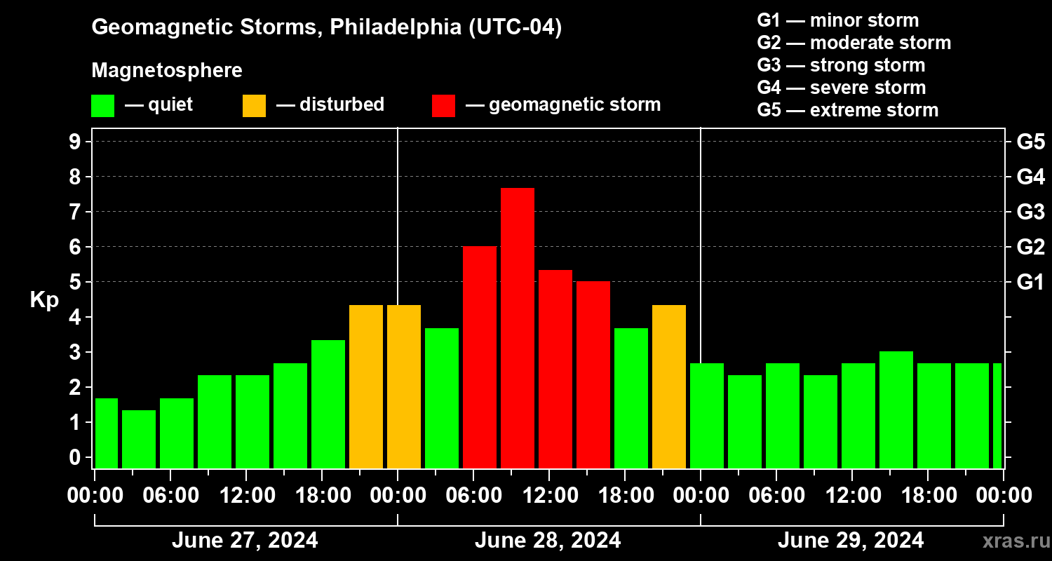 Geomagnetic storms in Philadelphia — Jun 29, 2024