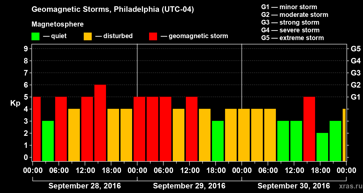 Geomagnetic storms in Philadelphia — Sep 30, 2016